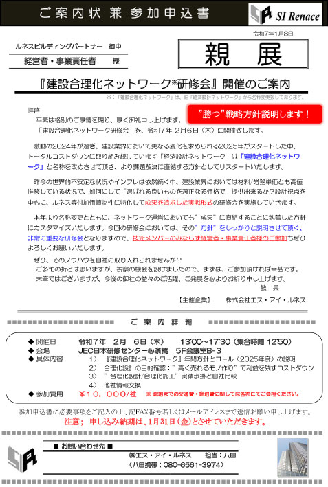 『建設合理化ネットワーク研修会』のご案内